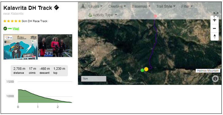 Η διαδρομή είναι τεχνική με μεγάλες κλίσεις γρήγορη ροή και μεγάλα άλματα, είναι κατασκευασμένη για ποδήλατα κατάβασης, με το λιγότερο 160 χιλιοστά διαδρομής αναρτήσεων μπρος-πίσω (Full-suspension). Το μήκος είναι περίπου 2700 μέτρα. Η αφετηρία βρίσκεται στη περιοχή του Κάστρου, σε υψόμετρο 1250 μέτρα. Ο τερματισμός βρίσκεται στη περιοχή Σκετζέικα, σε υψόμετρο 800 μέτρα.