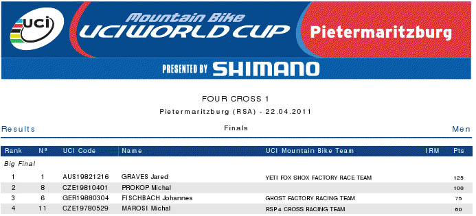 Ο Aaron Gwin κατάφερε να κερδίσει τον πρώτο αγώνα της χρονιάς, κάνοντας μια τρελή διαφορά χρόνου στο 2ο section της πίστας, και κατάφερε να ανεβάσει στο πρώτο σκαλί του βάθρου τα χρώματα της Trek World Racing, κάτι το οποίο κατάφερε να κάνει επίσης και η Tracy Moseley, κατακτώντας την πρώτη θέση στην κατηγορία γυναικών. Ακολουθούν αποτελέσματα από όλα τα αγωνίσματα...
