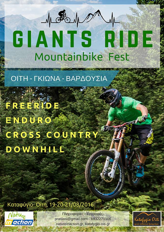 Το «Καταφύγιο Οίτη» (www.katafygio-oiti.gr) και η «Nature In Action» (www.natureinaction.gr) σας προσκαλούν σε ένα 3ήμερο ποδηλατικών εκδηλώσεων στα τρία μεγάλα βουνά της κεντρικής Ελλάδας. Τις διαδρομές έχει επιμεληθεί ο κορυφαίος αναβάτης Downhill Γρηγόρης Τσαλαφούτας (πρώτος αθλητής μέχρι στιγμής στο Πανελλήνιο Κύπελο Downhill 2016)